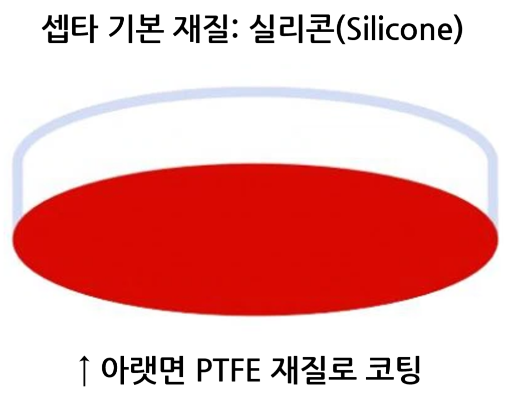 - 셉타 밑면: 빨간색 PTFE 재질 / 셉타 윗면: 흰색 실리콘 재질
